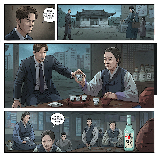 - 전통주(소주)가 등장하며 가족과의 관계를 상징적으로 표현