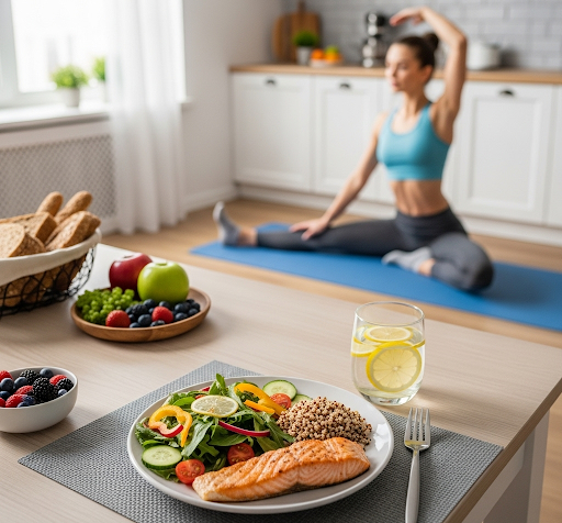 건강한 간을 위해 규칙적인 생활과 건강한 식습관을 강조하는 이미지입니다.