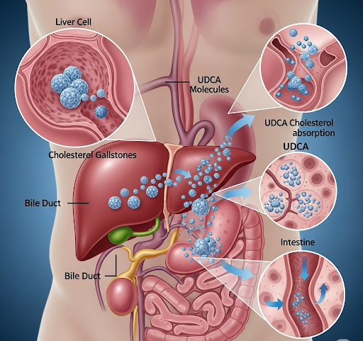 우루사의 핵심은 주성분인 UDCA에 있습니다. UDCA는 담즙의 흐름을 개선하고, 간 내에 쌓일 수 있는 유해한 담즙산 대신 유익한 담즙산의 비율을 늘려 간세포를 보호합니다.